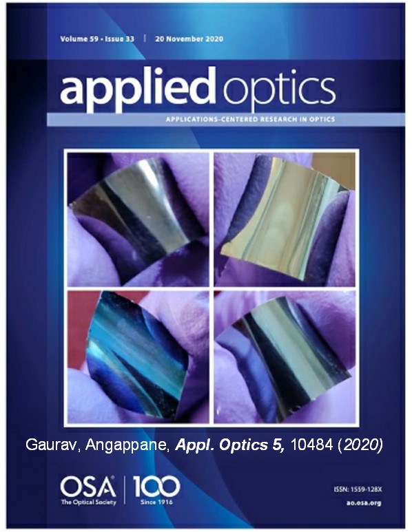 - Gaurav Shukla's paper on 'Self-cleaning structural colors by TiO2/Ti nanostructures' appeared on the cover page of Applied Optics issue.